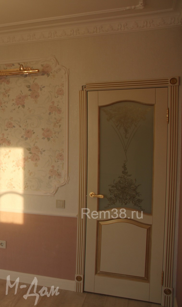 Стены - обои, сложная окраска, багеты, молдинги, карнизы.